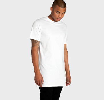 Crew neck, extra long body roughly 10cm longer than our standard tees